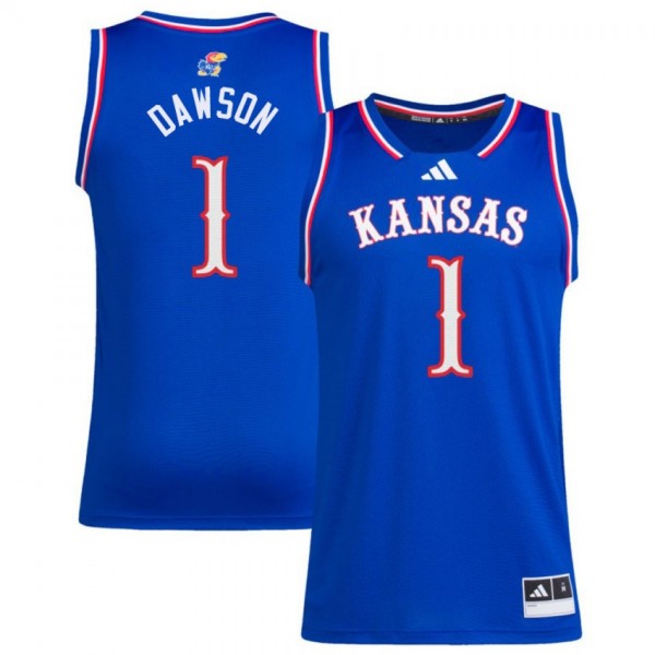 • Official Jersey: Mens Jayden Dawson Royal Kansas Jayhawks #1 College Basketball Replica Jerseys